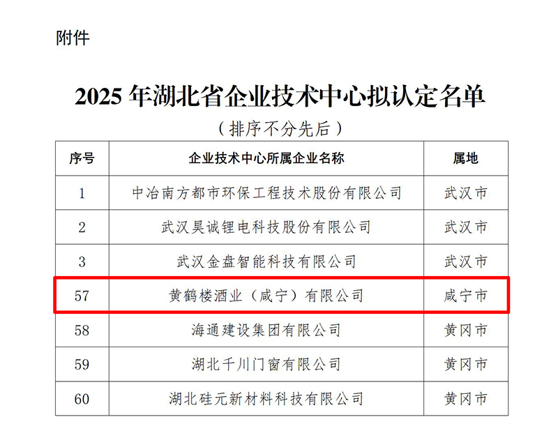 近日,湖北省发展和改革委员会发布了“2025年湖北省企业技术中心”认定名单。鸿运国际酒业(咸宁)有限公司凭借扎实的技术研发实力、系统化的创新体系和持续的产业引领能力成功跻身榜单。